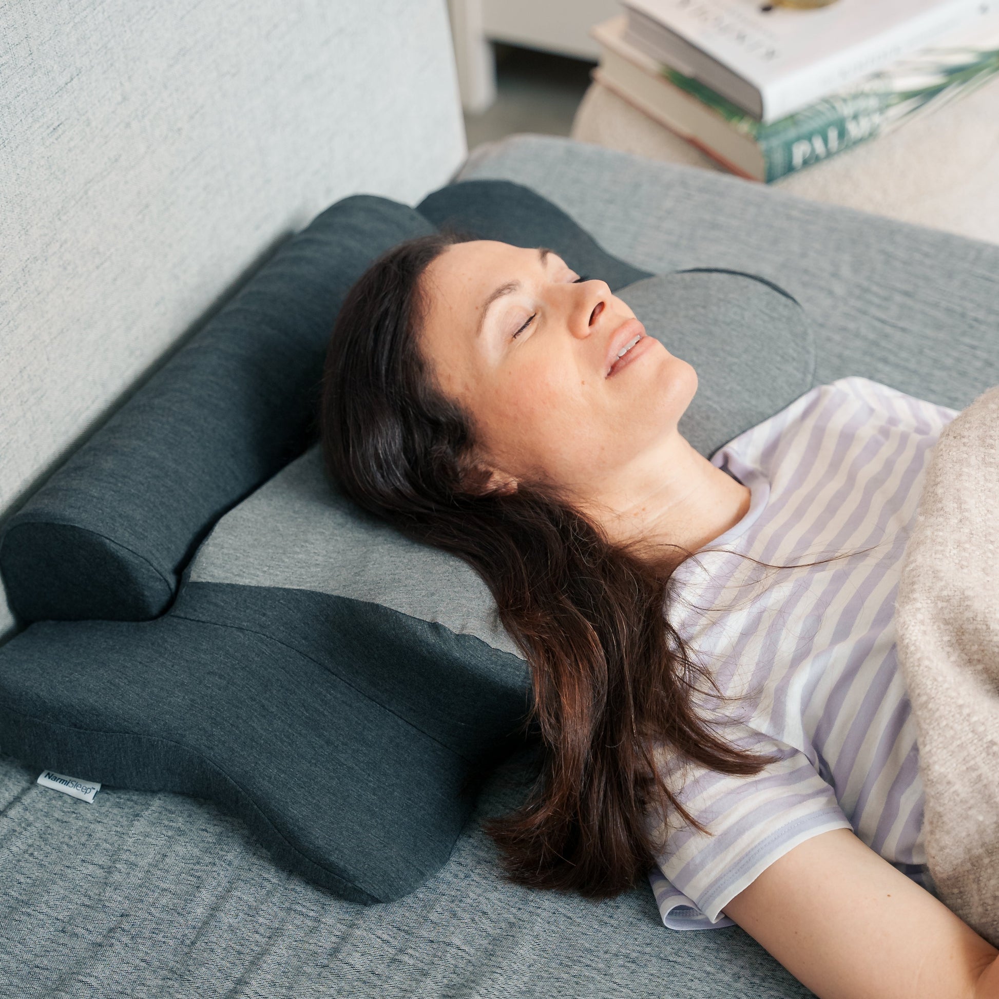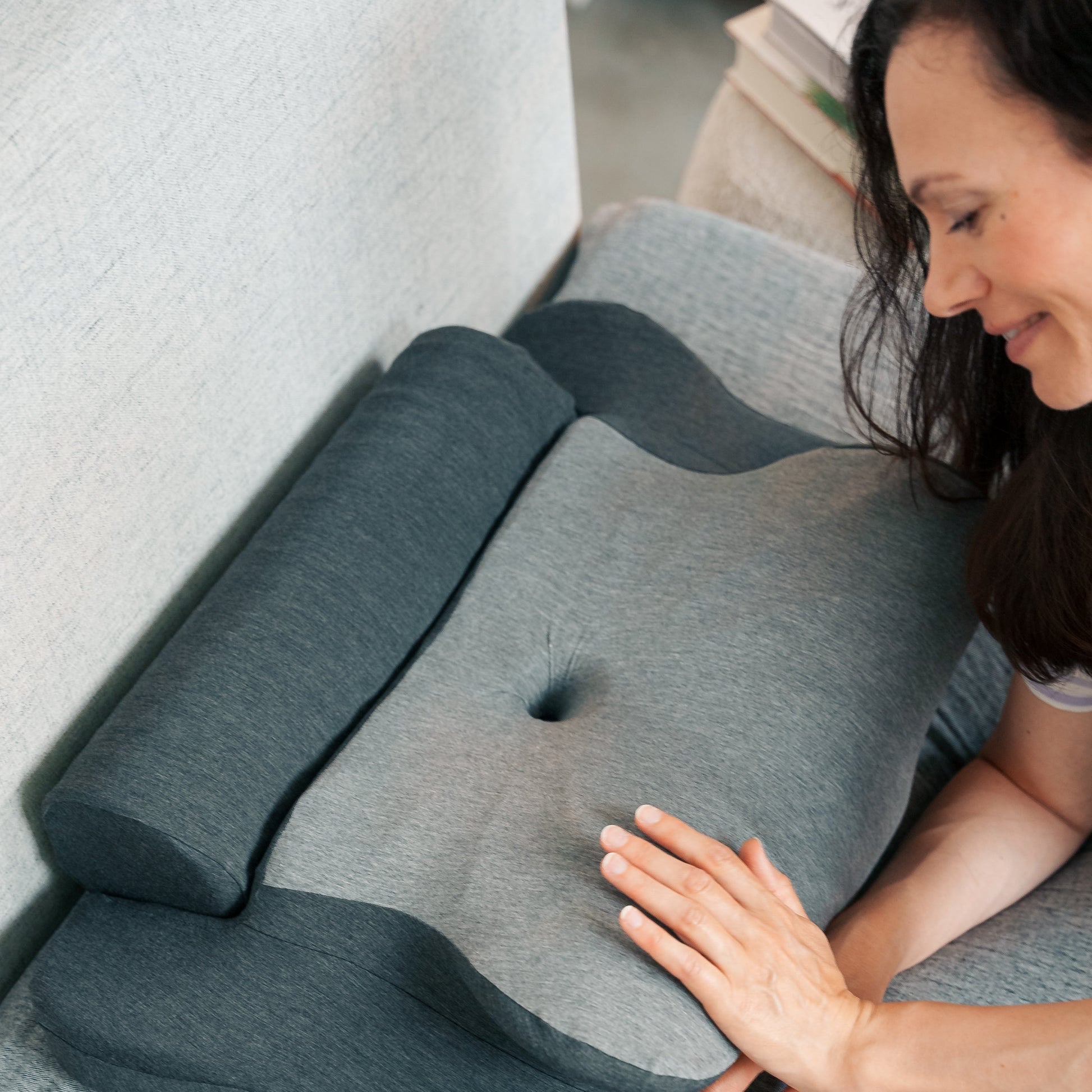 NarmiRoll™ lynes nemt af og kan derefter bruges som knæpude, lændestøtte i stolen eller til blide udstræk for nakken.